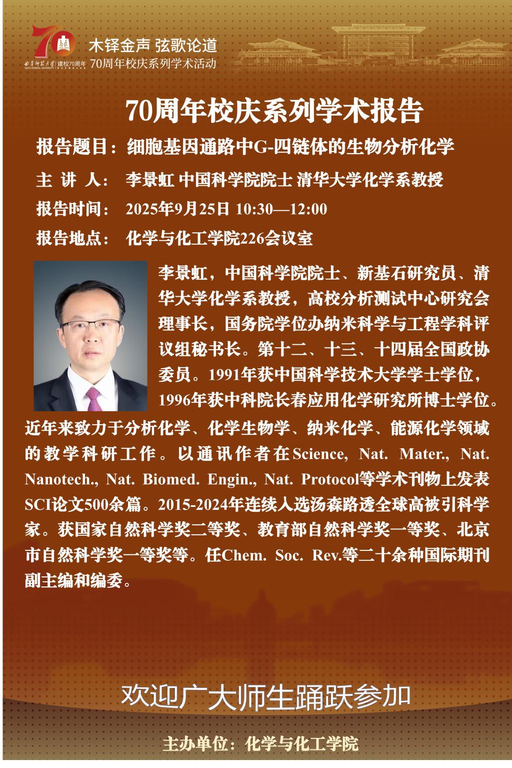 【9月25日】校庆七十周年化学与化工学院系列学术报告六