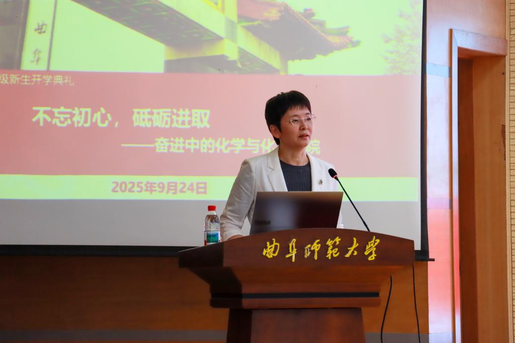 (通讯员:张昊 摄影:曹一诺)为助力新生快速融入大学集体、明晰成长坐标,9 月 24 日,化学与化工学院院长冯媛媛以 “新时代化学人的责任与担当” 为主题,为 2025 级新生讲授了一堂兼具思想深度与专业温度的开学思政课,引导学子在化学求索之路上砥砺初心、奋发笃行。