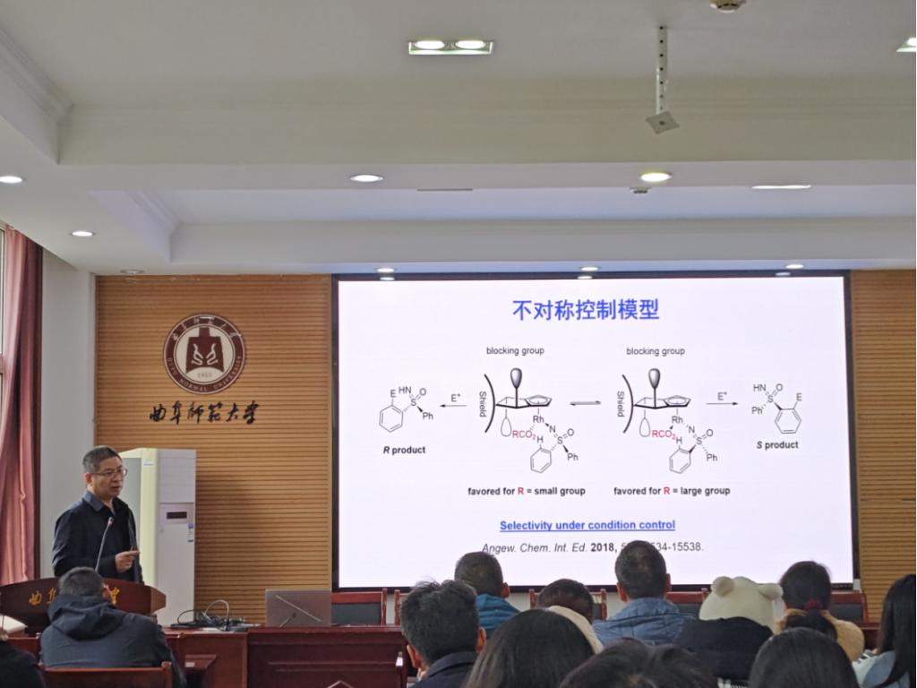 在问答环节,学院师生就李教授的精彩报告展开了交流与讨论,深入探讨了氮烯试剂的设计理念以及阐明相关反应机理的实验证据,现场交流氛围热烈。本次报告作为我校70周年校庆系列学术活动之一,为师生提供了与知名学者面对面交流的机会,对促进学科建设和科研创新具有重要意义。