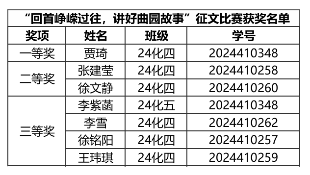 图为“回首峥嵘过往,讲好曲园故事”征文比赛获奖名单