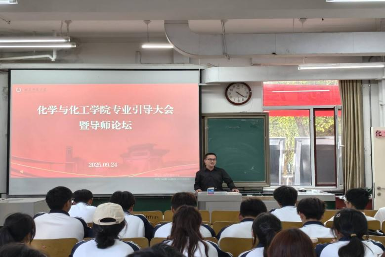(通讯员:王亚平 摄影:曹一诺)为切实帮助 2025 级新生快速破解 “入学适应” 难题,明晰专业学习脉络、科学规划大学四年成长路径,9 月 24 日下午,化学与化工学院紧扣不同专业培养特色,分场次召开 2025 级新生学业引导大会。学院副院长刘鹏、团委书记王亚平,材料化学教研室白啸老师、化工教研室王凤祥老师及2025级辅导员曾川参加会议,全体 2025 级本科生齐聚会场,共同开启这场兼具专业性与指导性的学业 “启蒙第一课”。