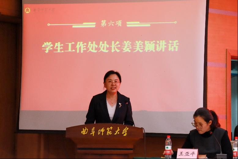 图为学生工作处处长姜美颖发表讲话