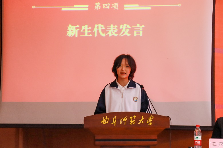接着,在校生代表王锡琳向新生分享了生活与学习中的点滴感悟,提出学习要点滴积累、脚踏实地。
