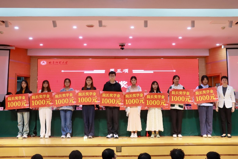 典礼上副院长刘鹏宣读了院长奖学金获奖名单。院长冯媛媛、学校团委书记孔轶众为分别为院长奖学金、阳瑞奖学金获得者颁奖。