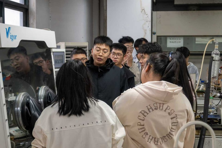 实验室负责人们结合自身科研经历,耐心细致地为新生讲解仪器设备的工作原理、操作规范以及实验室的安全管理制度、实验操作流程等重要内容,鼓励新生们加入实验室进行科研训练。针对新生提出的疑问,老师和学长学姐结合专业学习与科研经历,逐一耐心解答,现场互动氛围热烈。参观过程中,同学们始终保持专注,认真聆听讲解,展现出对专业知识的强烈渴望与探索热情。参观学习结束后,同学们有序撤离。